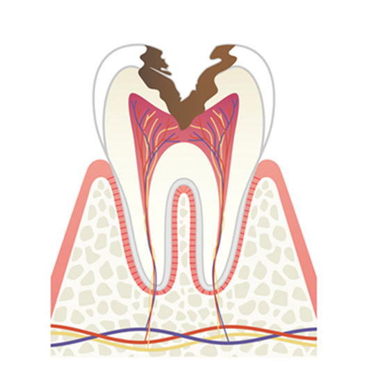虫歯が歯髄まで到達すると、激しい痛みを伴うのが特徴です。この段階では、感染した歯髄を除去し、根管治療を行う必要があります。